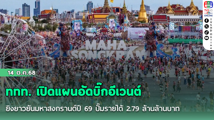 ททท. เปิดแผนอัดบิ๊กอีเวนต์ยิงยาวยันมหาสงกรานต์ปี 69 ปั๊มรายได้ 2.79 ล้านล้านบาท