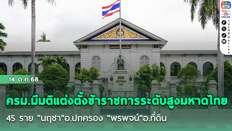 ครม.มีมติแต่งตั้งข้าราชการระดับสูงมหาดไทย 45 ราย "นฤชา"ผงาดนั่งอธิบดีกรมการปกครอง "พรพจน์"คัมแบ็คอธิบดีกรมที่ดิน "สยาม"กลับพัฒนาชุมชน ด้าน"สิริพงศ์"เผย"นายกฯ"กําชับยึดหลักคุณธรรม-ใช้คนให้ถูกกับงาน ลั่น!คืนความเป็นธรรมบางคนที่ถูกกลั่นแกล้ง