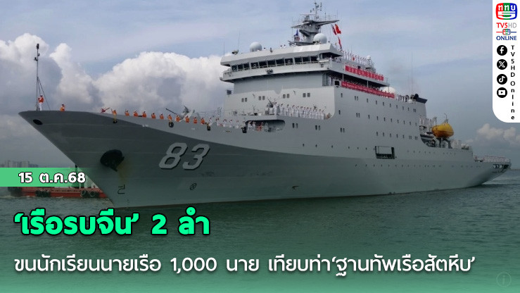 ‘เรือรบจีน’ 2 ลํา ขนนักเรียนนายเรือ 1,000 นาย เทียบท่า‘ฐานทัพเรือสัตหีบ’ จัดกิจกรรมเปิดเรือให้ประชาชนชม กระชับสัมพันธ์ทหาร 2 ชาติ