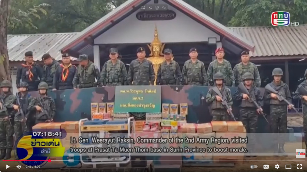 พลโท วีระยุทธ รักศิลป์ แม่ทัพภาคที่ 2 พร้อมคณะ ลงพื้นที่ตรวจเยี่ยมให้กําลังใจกําลังพลที่ฐานปฏิบัติการปราสาทตาเมือนธม อําเภอพนมดงรัก จังหวัดสุรินทร์ ซึ่งปฏิบัติภารกิจดูแลและป้องกันชายแดนไทย–กัมพูชา โดยได้มอบเครื่องปั่นไฟฟ้าและสิ่งของบํารุงขวัญ รวมถึงแจกตะกรุด “หลวงปู่เจียม รุ่นทหารของพระเจ้าอยู่หัว” เพื่อเป็นขวัญและกําลังใจให้แก่เจ้าหน้าที่ โดยแม่ทัพภาคที่ 2 ชื่นชมกําลังพลที่ปฏิบัติหน้าที่ด้วยความเสียสละ อดทน และกล้าหาญ พร้อมกําชับให้เตรียมความพร้อมอยู่เสมอ โดยเฉพาะการเฝ้าระวังชายแดนในช่วงสถานการณ์เปลี่ยนแปลง