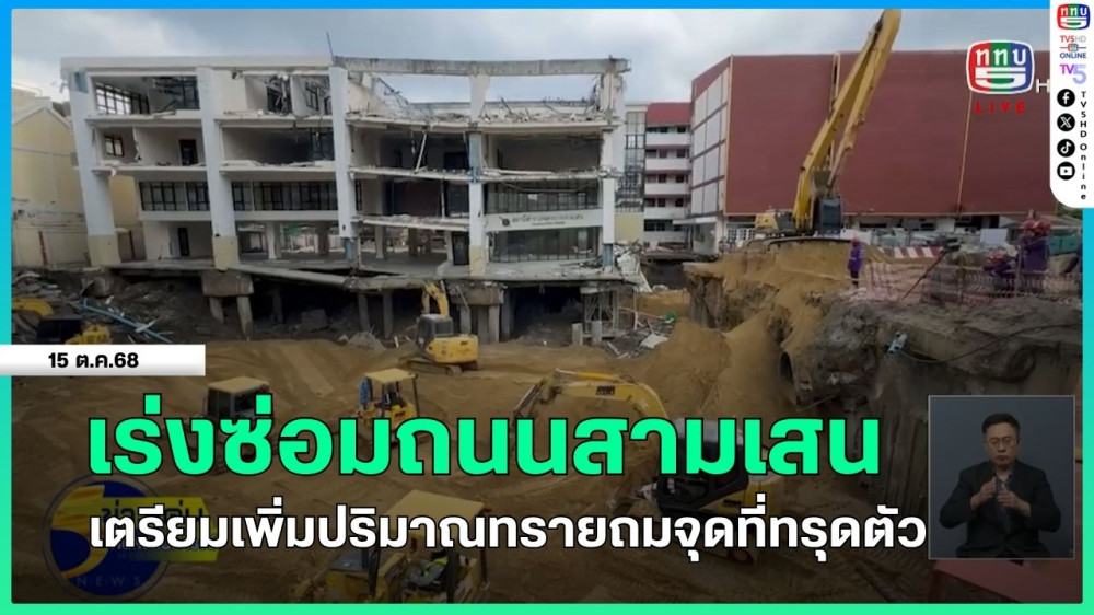 เร่งซ่อมถนนสามเสน เตรียมเพิ่มปริมาณทรายถมจุดที่ทรุดตัว