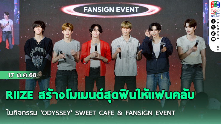 เริ่มต้นความหวานในกิจกรรม SWEET CAFE EVENT ณ Sweet Cafe by SOURI ซึ่งตั้งอยู่บริเวณด้านข้าง RIIZE ‘ODYSSEY’ POP-UP STORE IN BANGKOK by SM True โดย RIIZE สร้างความทรงจําสุดพิเศษให้ BRIIZE ชาวไทยผู้โชคดี 80 ท่าน ได้ใกล้ชิดกับ RIIZE อย่างอบอุ่น หนุ่ม ๆ ได้ร่วมทักทายแฟน ๆ แบบเป็นกันเอง พร้อมสวมบท “บาริสต้า” เสิร์ฟขนมและเครื่องดื่มให้ด้วยตนเอง สร้างโมเมนต์สุดน่ารักที่ทําให้เสียงกรี๊ดดังลั่นทั้งร้าน