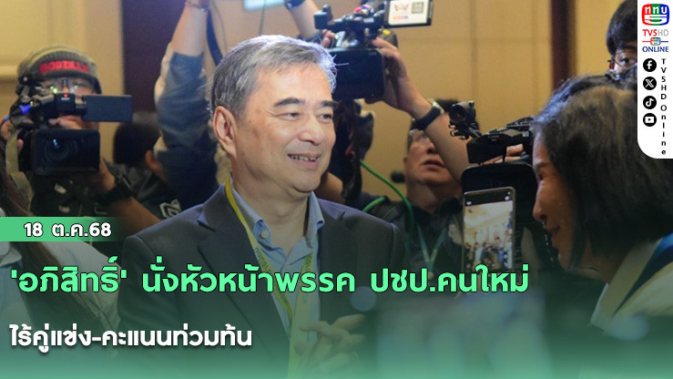'อภิสิทธิ์' นั่งหัวหน้าพรรค ปชป.คนใหม่ ไร้คู่แข่ง-คะแนนท่วมท้น