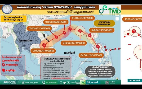ขณะเดียวกัน พายุโซนร้อน “เฟิงเฉิน” (Fengchen) ซึ่งก่อตัวบริเวณเกาะลูซอน ประเทศฟิลิปปินส์ ขณะนี้ได้เคลื่อนลงสู่ทะเลจีนใต้ตอนบน และคาดว่าจะเคลื่อนเข้าใกล้ตอนใต้ของเกาะไหหลํา ประเทศจีน รวมถึงชายฝั่งตอนกลางของประเทศเวียดนาม ในช่วงวันที่ 21 – 23 ตุลาคมนี้