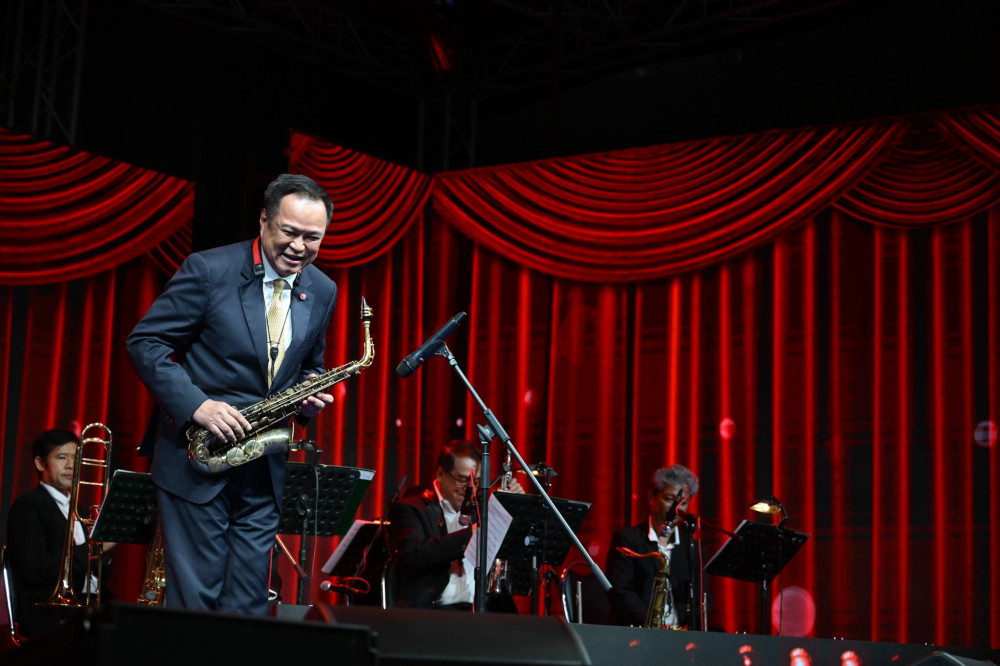 โอกาสนี้นายกรัฐมนตรียังได้ร่วมเล่นเครื่องดนตรีแซกโซโฟนร่วมกับวงดนตรีเฉลิมราชย์ โรงมหรสพหลวงศาลาเฉลิมกรุง ในบทเพลงลาวดวงเดือน และรับชมการขับร้องเพลง “เรารักษ์เพลงไทย” โดยผู้ชนะจากซีซั่น 1