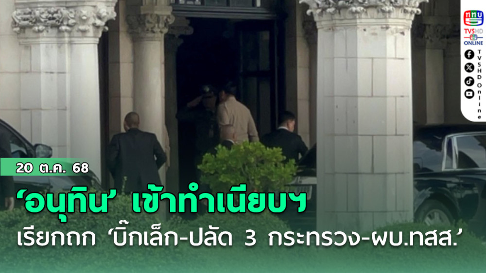 20 ต.ค. 2568 – เมื่อเวลา 07.49 น. ที่ทําเนียบรัฐบาล ผู้สื่อข่าวรายงานว่า นายอนุทิน ชาญวีรกูล นายกรัฐมนตรี และรมว.มหาดไทย เดินทางเข้าปฎิบัติหน้าที่ โดยเรียกหน่วยงานความมั่นคงต่างๆ มาให้ข้อมูล ก่อนไปประชุมคณะกรรมการอํานวยการรักษาความมั่นคงภายในราชอาณาจักร ครั้งที่ 1/2569 (กอ.รมน.) ที่กองอํานวยการรักษาความมั่นคงภายในราชอาณาจักร (กอ.รมน.) เขตดุสิต ในเวลา 09.30 น. โดยมี พล.อ.ณัฐพล นาคพาณิชย์ รมว.กลาโหม พล.ท.อดุลย์ บุญธรรมเจริญ รมช.กลาโหม พล.อ.อุกฤษฎ์ บุญตานนท์ ผู้บัญชาการทหารสูงสุด พล.อ.ธราพงษ์ มะละคํา ปลัดกระทรวงกลาโหม นายอรรษิษฐ์ สัมพันธรัตน์ ปลัดกระทรวงมหาดไทย นางเอกสิริ ปิณฑะรุจิ ปลัดกระทรวงการต่างประเทศ เข้าหารือบนตึกไทยคู่ฟ้า