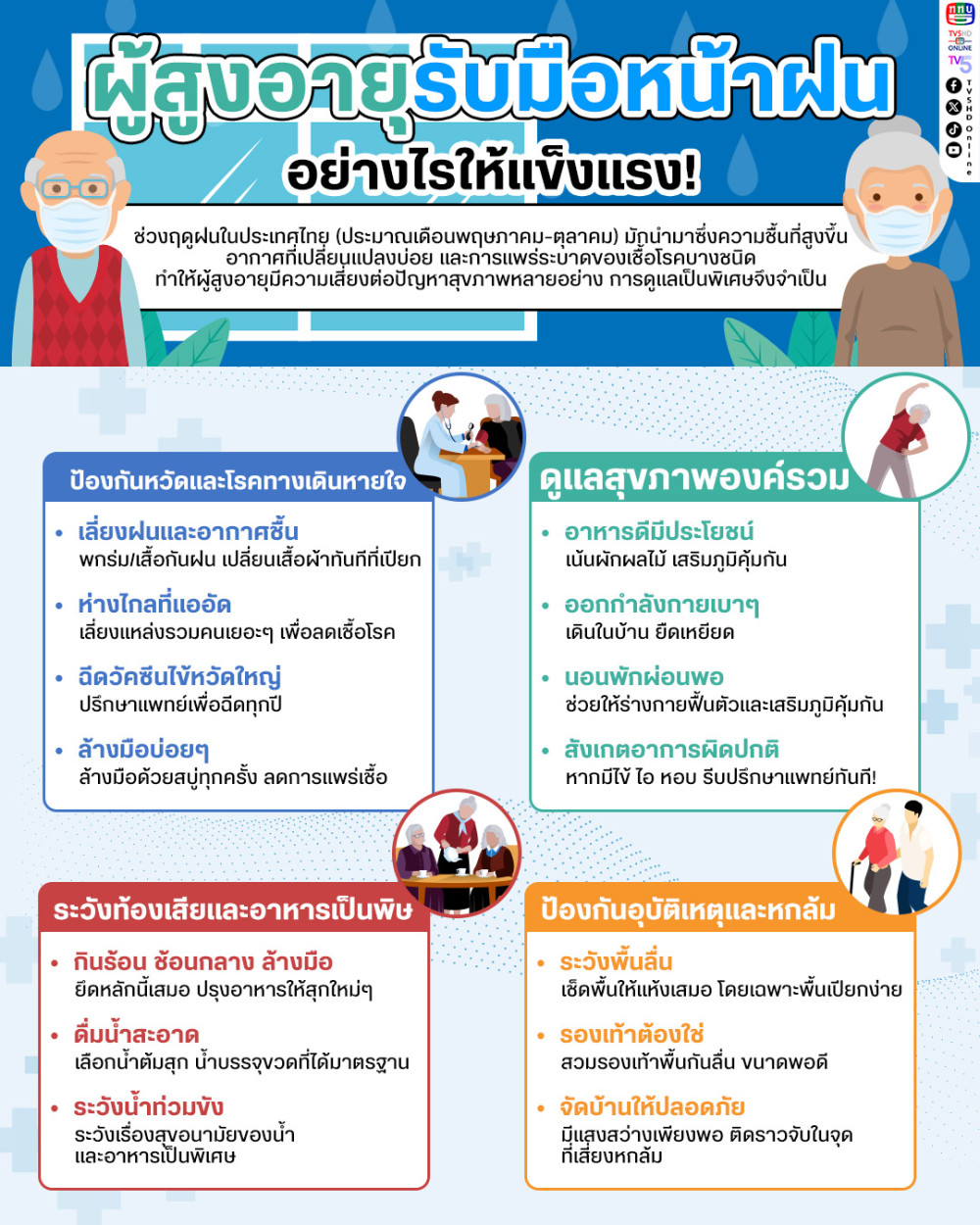 ใส่ใจดูแลกันเป็นพิเศษ ให้ผู้สูงอายุแข็งแรงตลอดหน้าฝนนะครับ!
