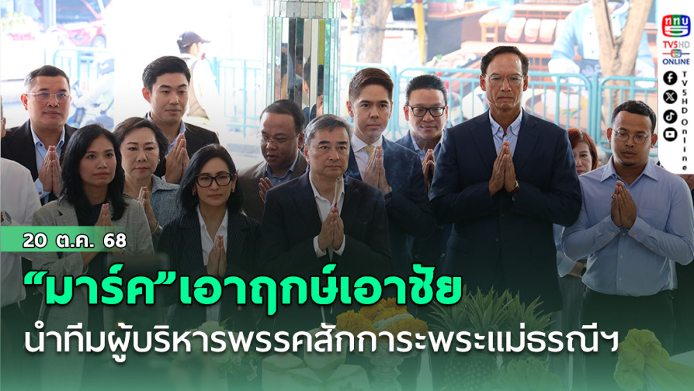 “มาร์ค”เอาฤกษ์เอาชัย นําทีมผู้บริหารพรรคชุดใหม่สักการะพระแม่ธรณีฯก่อนเรียกประชุมกก.บห.วางแนวทางการทํางาน เผย เชิญผู้รู้ “สุวิทย์-บรรยง-จรีพร” ให้คําชี้แนะสถานการณ์บ้านเมือง 28 ต.ค.นี้