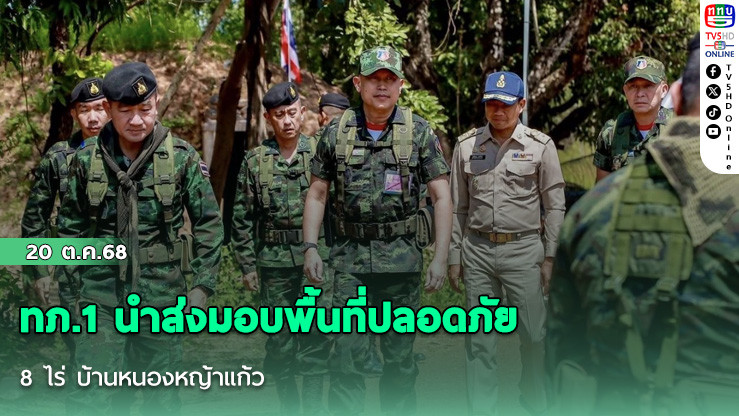 วันที่ 20 ตุลาคม 2568 - พลโท วรยส เหลืองสุวรรณ แม่ทัพภาคที่ 1 / ผบ.ศปก.ทภ.1 พร้อมด้วย นายปริญญา โพธิสัตย์ ผู้ว่าราชการจังหวัดสระแก้ว ลงพื้นที่ บ้านหนองจาน เพื่อติดตามความคืบหน้าการเก็บกู้ทุ่นระเบิด ซึ่งดําเนินการโดยกองกําลังบูรพา ร่วมกับศูนย์ปฏิบัติการทุ่นระเบิดแห่งชาติ (ศทช.) โดยมีเป้าหมายสร้างสภาพแวดล้อมที่ปลอดภัยและคืนพื้นที่ทํากินให้กับประชาชน