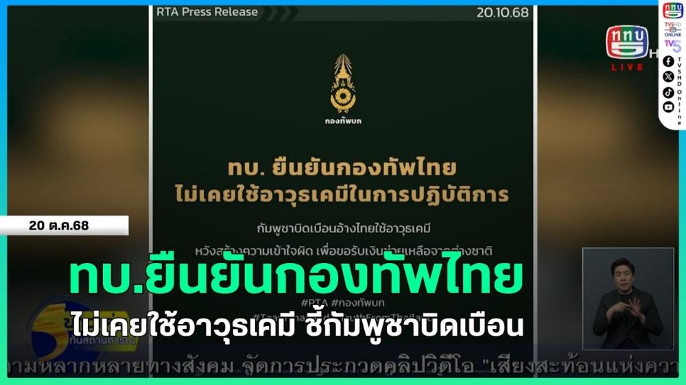 ทบ.ยืนยันกองทัพไทยไม่เคยใช้อาวุธเคมี ชี้กัมพูชาบิดเบือน
