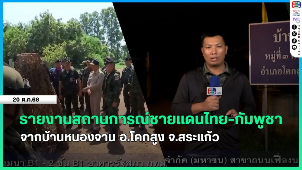 รายงานสถานการณ์ชายแดนไทย-กัมพูชา จากบ้านหนองจาน อ.โคกสูง จ.สระแก้ว (มทภ.1 ร่วมกับจังหวัดสระแก้ว ส่งมอบพื้นที่ปลอดภัยให้ประชาชนบ้านหนองหญ้าแก้ว)