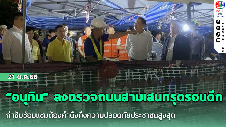 วานนี้ 20 ตุลาคม เวลา 22.00 น. นายสิริพงศ์ อังคสกุลเกียรติ โฆษกประจําสํานักนายกรัฐมนตรี เปิดเผยว่า นายอนุทิน ชาญวีรกูล นายกรัฐมนตรี และรัฐมนตรีว่าการกระทรวงมหาดไทย ลงพื้นที่ตรวจสอบความคืบหน้าการซ่อมแซมถนนสามเสน บริเวณหน้าโรงพยาบาลวชิรพยาบาล เขตดุสิต หลังเกิดเหตุถนนทรุดตัวก่อนหน้านี้