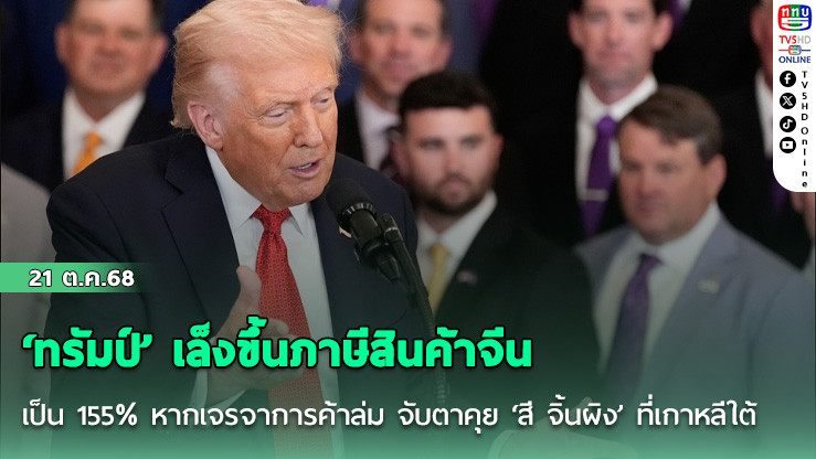 ‘ทรัมป์’ เล็งขึ้นภาษีสินค้าจีนเป็น 155% หากเจรจาการค้าล่ม จับตาคุย ‘สี จิ้นผิง’ ที่เกาหลีใต้