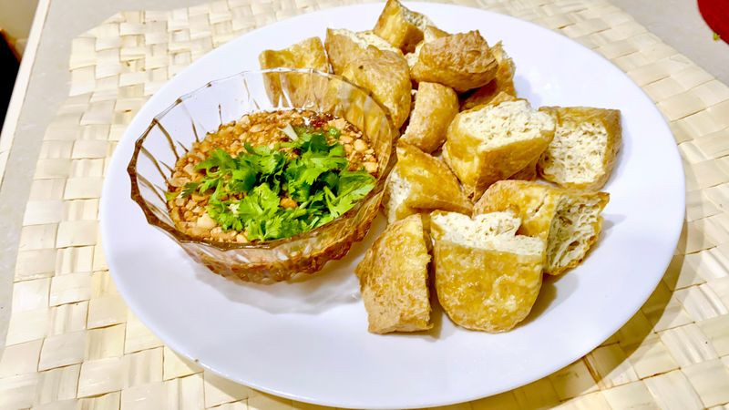 2. เต้าหู้ทอดกรอบ – เมนูสุดคลาสสิก กรอบนอกนุ่มใน จิ้มซอสเต้าเจี้ยวคือที่สุด!