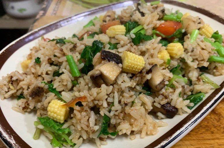 6. ข้าวผัดเจ – อาหารจานเดียวทําง่าย ใช้ข้าวเย็นผัดกับผักรวมและเต้าหู้