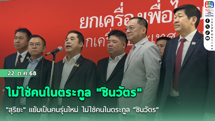 "สุริยะ" ลั่นไม่ใช่ตนเองแน่นอนนั่งหัวหน้าพรรคเพื่อไทยคนใหม่ แย้มเป็นคนรุ่นใหม่ ไม่ใช่ "ชินวัตร"