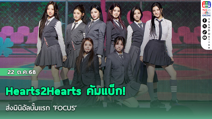 Hearts2Hearts เกิร์ลกรุ๊ป วงล่าสุดจากค่าย SM ENTERTAINMENT ประกอบด้วย CARMEN (คาร์เมน), STELLA (สเตลล่า), A-NA (เอ-นา), IAN (อีอัน), YE-ON (เย-อน), JUUN (จูอึน), YUHA (ยูฮา) และ JIWOO (จีอู) ประกาศคัมแบ็กอย่างยิ่งใหญ่พร้อมมินิอัลบั้มชุดแรก ‘FOCUS’ ที่รวบรวม 6 บทเพลงคุณภาพ สะท้อนการเติบโตและเสน่ห์ที่หลากหลายของวง Hearts2Hearts
