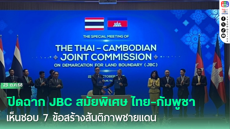 ไทย–กัมพูชา ลงนามบันทึกประชุม JBC ครั้งประวัติศาสตร์ เห็นชอบร่วม 7 ข้อใหญ่ ขับเคลื่อนการสํารวจชายแดน ใช้เทคโนโลยีใหม่เพื่อสันติภาพ ตัดประเด็น “รั้วชายแดน” ออกจากวาระ