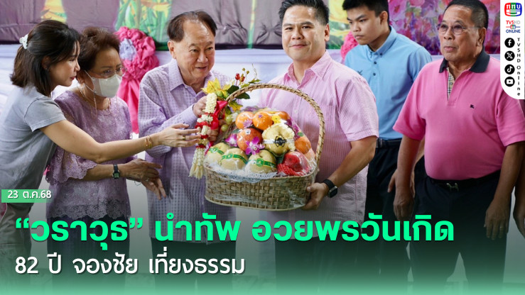เมื่อวันที่ 23 ต.ค.68 ที่บ้านเที่ยงธรรม อ. ศรีประจันต์ จ.สุพรรณบุรี นายวราวุธ ศิลปอาชา หัวหน้าพรรคชาติไทยพัฒนา พร้อม สส. และสมาชิกพรรคชาติไทยพัฒนา อาทิ นายอนุชา สะสมทรัพย์ สส.นครปฐม รองหัวหน้าพรรคชาติไทยพัฒนา นายนพดล มาตรศรี สส.สุพรรณบุรี นายธเนศพล ธนบุณยวัฒน์ กรรมการบริหารพรรคชาติไทยพัฒนา นายสรชัด สุจิตต์ สมาชิกสภาผู้แทนราษฎรจังหวัดสุพรรณบุรี พรรคชาติไทยพัฒนา นายอาชวิทธิ์ เจิงกลิ่นจันทน์ โฆษกพรรคชาติไทยพัฒนา ร่วมอวยพรวันเกิดครบรอบ 82 ปี นายจองชัย เที่ยงธรรม อดีตรัฐมนตรีช่วยว่าการกระทรวงคมนาคม อดีตรองหัวหน้าพรรคชาติไทย