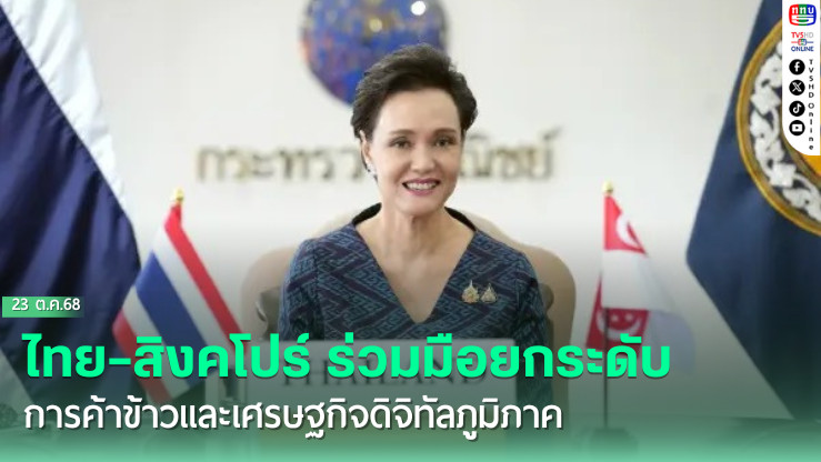 23 ตุลาคม 2568 - นางศุภจี สุธรรมพันธุ์ รัฐมนตรีว่าการกระทรวงพาณิชย์ ได้หารือผ่านระบบประชุมทางไกลกับนายกาน คิม ยอง รองนายกรัฐมนตรีและรัฐมนตรีว่าการกระทรวงการค้าและอุตสาหกรรมของสิงคโปร์ เพื่อเดินหน้าขยายความร่วมมือทางการค้าและการลงทุนระหว่างไทย–สิงคโปร์ พร้อมเร่งผลักดันการส่งออกสินค้าเกษตรไทย และการเจรจาข้อตกลงทางเศรษฐกิจดิจิทัลในภูมิภาค
