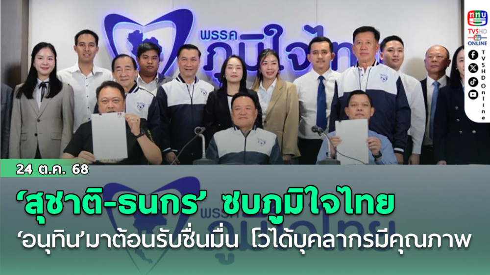 24 ตุลาคม 2568 เวลา12.30น. ที่พรรคภูมิใจไทย(ภท.) นายอนุทิน ชาญวีรกูล นายกรัฐมนตรี และรมว.มหาดไทย ในฐานะหัวหน้าพรรคภูมิใจไทย ให้การต้อนรับนายสุชาติ ชมกลิ่น รองนายกฯ และรมว.ทรัพยากรธรรมชาติและสิ่งแวดล้อม และนายธนกร วังบุญคงชนะ รมว.อุตสาหกรรม ที่ทั้ง2คนลาราชการ นําคณะเดินทางเข้าสมัครพรรคภูมิใจไทย รวม 4 คนประกอบด้วยนายสุชาติ นายธนกร และนายฐาปกร กุลเจริญ เลขานุการรมว.อุตสาหกรรม อดีตสส.สมุทรปราการ พรรคพลังประชารัฐ และนายฤทธิรงค์ ภูมิสวัสดิ์ ที่ปรึกษาของรมว.อุตสาหกรรม