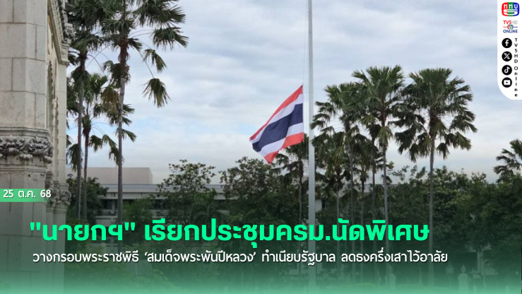 25 ต.ค.2568 ผู้สื่อข่าวรายงานว่า นายอนุทิน ชาญวีรกูล นายกรัฐมนตรีและรมว.มหาดไทย ได้แจ้งครม. ให้เข้าร่วมการประชุม ครม. (นัดพิเศษ) ในเวลา 10.00 น. ที่ตึกบัญชาการ 1 ทําเนียบรัฐบาลเพื่อประชุมวางกรอบการเตรียมงานพระราชพิธีพระบรมศพสมเด็จพระนางเจ้าสิริกิติ์ พระบรมราชินีนาถ พระบรมราชชนนีพันปีหลวงให้สมพระเกียรติ และตั้งคณะกรรมการชุดต่างๆสําหรับการดําเนินการในเรื่องนี้