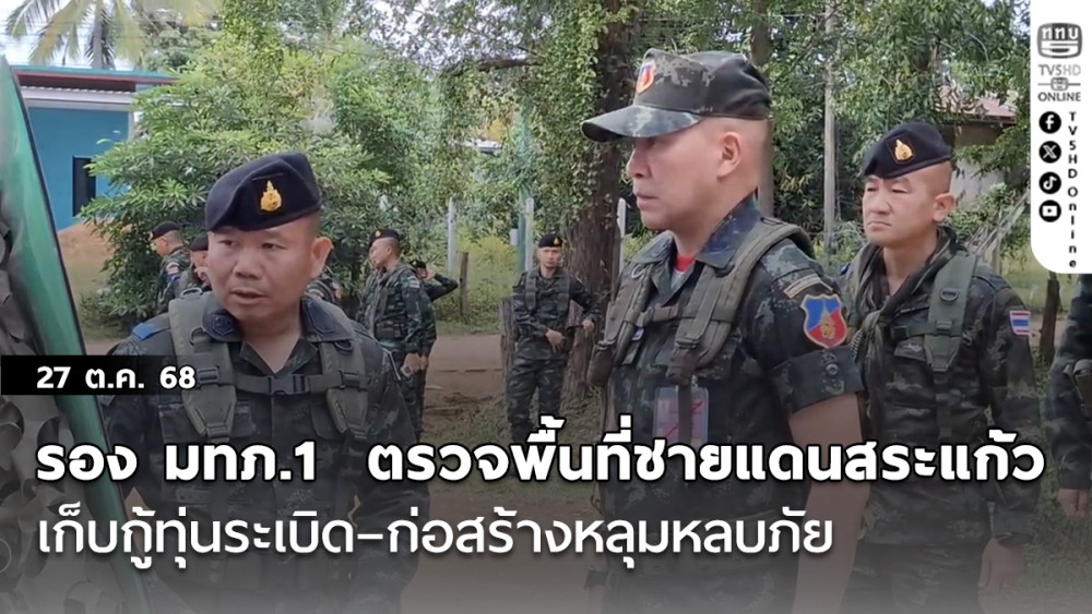 กองทัพภาคที่ 1 ร่วมหน่วยเก็บกู้ทุ่นระเบิด เดินหน้าสร้างความปลอดภัยให้ชายแดนไทย รองแม่ทัพภาคที่ 1 ตรวจติดตามโครงการ “หทัยทิพย์” เพื่อปกป้องชีวิตและทรัพย์สินประชาชน