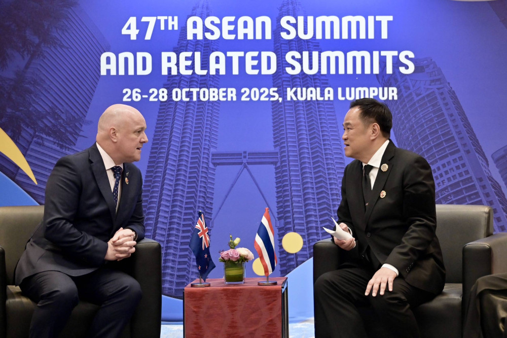 วานนี้ จันทร์ที่ 27 ตุลาคม 2568) เวลา 19.30 น. (ตามเวลาท้องถิ่นกรุงกัวลาลัมเปอร์ ซึ่งเร็วกว่ากรุงเทพฯ 1 ชม.) ห้อง 406 ณ ศูนย์ประชุม KLCC กรุงกัวลาลัมเปอร์ ประเทศมาเลเซีย นายอนุทิน ชาญวีรกูล นายกรัฐมนตรีและรัฐมนตรีว่าการกระทรวงมหาดไทย หารือกับ นายคริสโตเฟอร์ ลักซอน (The Right Honourable Christopher Luxon) นายกรัฐมนตรีนิวซีแลนด์ ในห้วงการประชุมสุดยอดอาเซียน ครั้งที่ 47 และการประชุมสุดยอดที่เกี่ยวข้อง