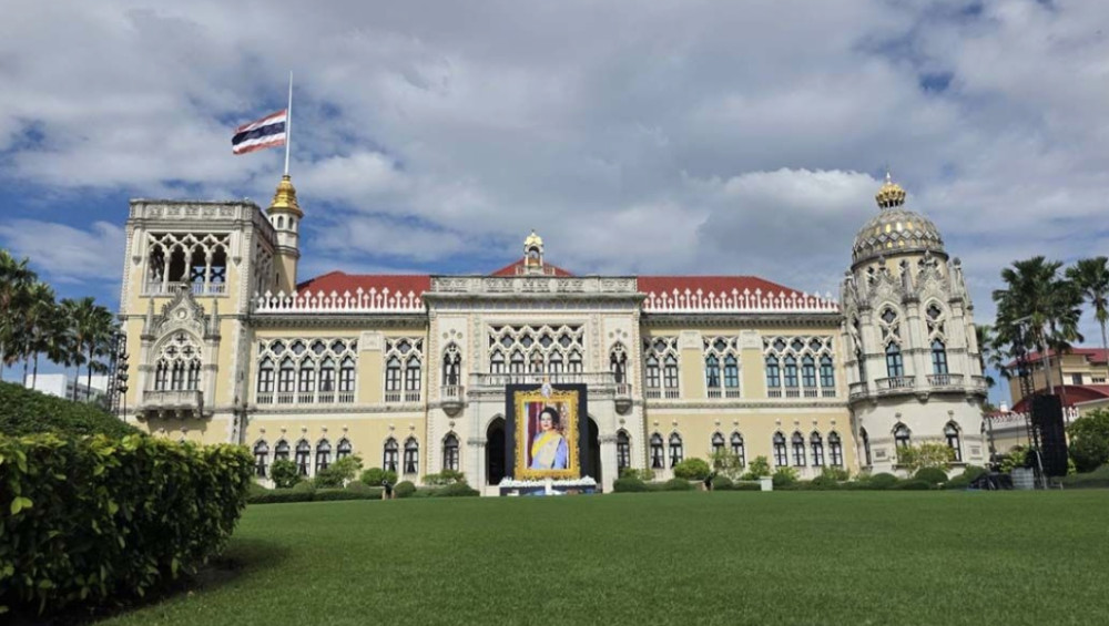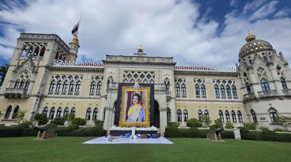 ทําเนียบรัฐบาล อัญเชิญพระฉายาลักษณ์ สมเด็จพระบรมราชชนนีพันปีหลวง ประดิษฐาน หน้าตึกไทยคู่ฟ้า ก่อนจัดพิธีตักบาตรครบสัตตมวาร (7 วัน) ถวายเป็นพระราชกุศลเช้าวันพรุ่งนี้
