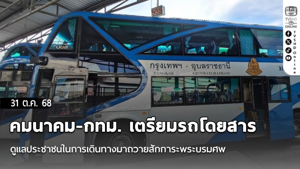 บขส. เตรียมรถโดยสารกว่า 7,000 เที่ยว รองรับประชาชน 1.2 แสนคนต่อวัน พร้อมเปิดสถานีขนส่ง 4 แห่งให้จอดรถฟรี ด้าน กทม. กําหนด 2 เส้นทางเดินเท้าผ่านอุโมงค์ทางลอด ขณะที่ ขสมก. จัด Shuttle Bus ฟรี 15 เส้นทางบริการผู้เดินทางถวายสักการะพระบรมศพ