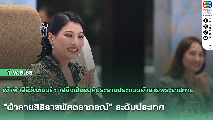 สมเด็จพระเจ้าลูกเธอ เจ้าฟ้าสิริวัณณวรี นารีรัตนราชกัญญา เสด็จเป็นองค์ประธานการประกวดผ้าลายพระราชทาน “ผ้าลายสิริราชพัสตราภรณ์” และงานหัตถกรรม รอบตัดสิน ระดับประเทศ (Final) ประจําปี 2568 คัดเลือกสุดยอดผลงานโดดเด่นเหรียญทอง 15 ประเภท โดยผลงาน "ผ้าลายสิริราชพัสตราภรณ์สร้างสรรค์สามัคคี" กลุ่มผ้าทอลายมงคลมนตราธิกาญจน์ จ.กาฬสินธุ์ คว้ารางวัลพิเศษรวมดาวสาวสยาม