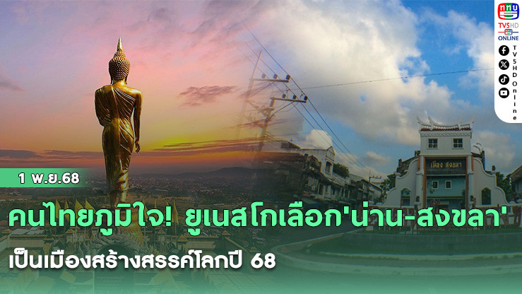 รัฐบาลปลื้ม "น่าน" และ "สงขลา" ได้รับคัดเลือกจาก UNESCO เป็นสมาชิกเครือข่ายเมืองสร้างสรรค์ ตอกย้ําพลังอัตลักษณ์ทางวัฒนธรรมไทย สร้างความภาคภูมิใจบนเวทีโลก