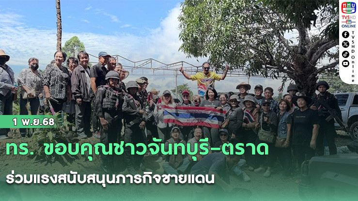 วันที่ 1 พฤศจิกายน 2568 - กองทัพเรือขอแสดงความขอบคุณพี่น้องประชาชนจังหวัดจันทบุรีและตราด ที่ได้ให้การสนับสนุนการปฏิบัติภารกิจของทหารนาวิกโยธินในการปกป้องอธิปไตยของชาติ โดยเฉพาะภารกิจการแก้ไขปัญหาการบุกรุกพื้นที่ชายแดน และการพัฒนาเส้นทางยุทธศาสตร์บริเวณชายแดนไทย–กัมพูชา