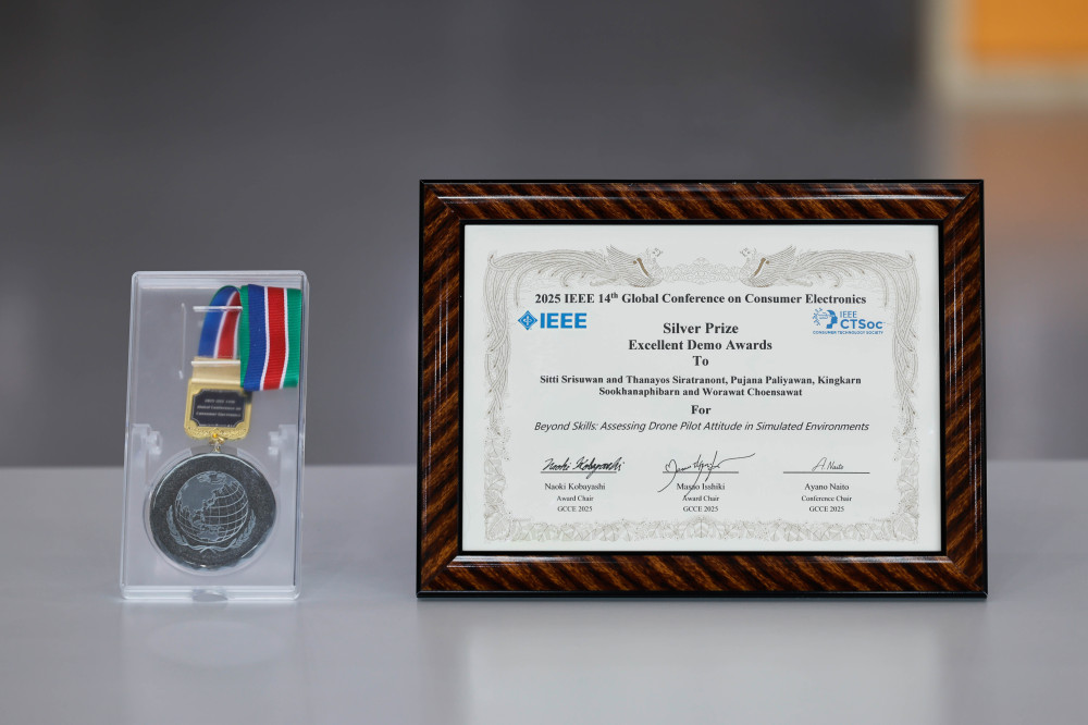 มหาวิทยาลัยกรุงเทพ สร้างชื่อเสียงให้ประเทศไทยบนเวทีโลกอีกครั้ง หลังคว้ารางวัล Silver Prize (รองชนะเลิศอันดับ 2) จากเวที IEEE GCCE 2025 Excellent Demo! Awards ในงานประชุมวิชาการนานาชาติ IEEE 14th Global Conference on Consumer Electronics 2025 ณ ประเทศญี่ปุ่น ด้วยผลงาน “CoSI Pilot: A VR-Based Drone Training Simulator” หรือระบบจําลองการฝึกนักบินโดรนด้วยเทคโนโลยีเสมือนจริง (VR)