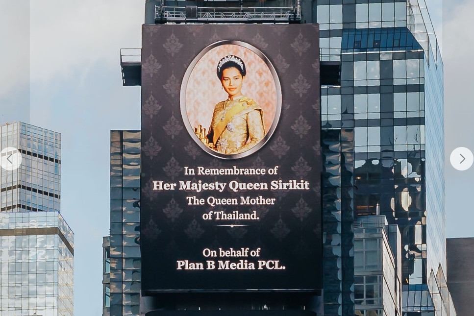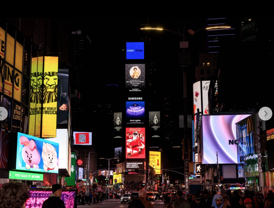 ถวายอาลัยแม่แห่งแผ่นดิน! พระฉายาลักษณ์'สมเด็จพระพันปีหลวง'ปรากฏบนจอยักษ์ไทม์สแควร์