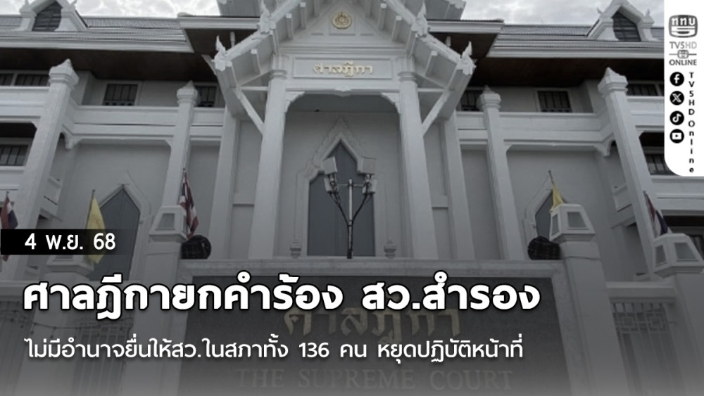 ศาลฎีกายกคําร้อง สว.สํารอง ไม่มีอํานาจยื่นให้สว.ในสภาทั้ง 136 คน หยุดปฏิบัติหน้าที่