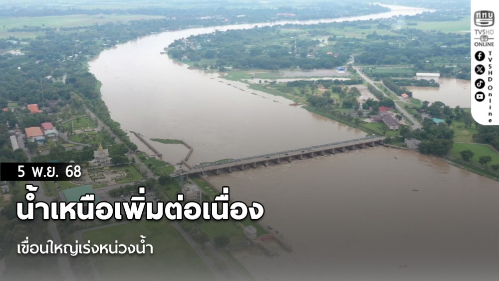 วันที่ 5 พ.ย.68 - ฝนตกหนักต่อเนื่องหลายพื้นที่ทางตอนบนของประเทศ โดยเฉพาะในลุ่มน้ําปิง ยม และน่าน ส่งผลให้น้ําเหนือไหลลงสู่แม่น้ําสายหลักเพิ่มขึ้นอย่างต่อเนื่อง ล่าสุดวันนี้ (4 พฤศจิกายน 2568) ศูนย์ปฏิบัติการน้ําอัจฉริยะ (SWOC) กรมชลประทาน รายงานว่า ระดับน้ําในแม่น้ําเจ้าพระยาเริ่มขยับสูงขึ้นอีกระลอก จากมวลน้ําที่หลากลงมาจากพื้นที่เหนือเขื่อนภูมิพลและเขื่อนสิริกิติ์ แม้จะมีการ “หน่วงน้ํา” และเก็บกักไว้ในเขื่อนขนาดใหญ่เต็มศักยภาพแล้วก็ตาม