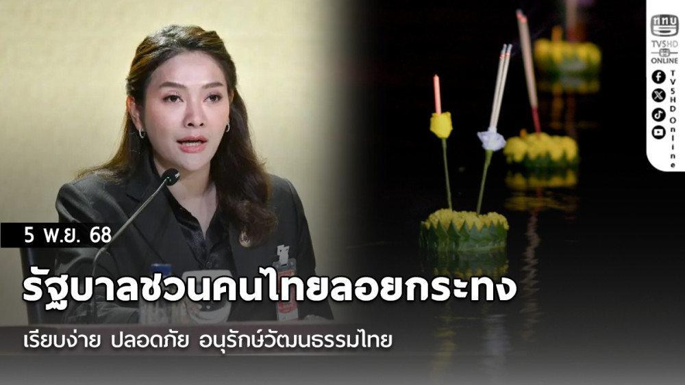 วันที่ 5 พ.ย.68 - นางสาวอัยรินทร์ พันธุ์ฤทธิ์ รองโฆษกประจําสํานักนายกรัฐมนตรี เปิดเผยว่า รัฐบาลขอเชิญชวนพี่น้องประชาชนร่วมสืบสานวัฒนธรรมไทยในวันลอยกระทง วันที่ 5 พฤศจิกายน 2568 โดยให้ทุกจังหวัดปรับรูปแบบกิจกรรมให้เหมาะสมกับช่วงเวลาแห่งการแสดงความอาลัยและน้อมรําลึกในพระมหากรุณาธิคุณของสมเด็จพระพันปีหลวง ซึ่งถือเป็นโอกาสสําคัญที่คนไทยจะได้ร่วมกันลอยกระทงอย่างเรียบง่ายแต่เปี่ยมด้วยความหมาย