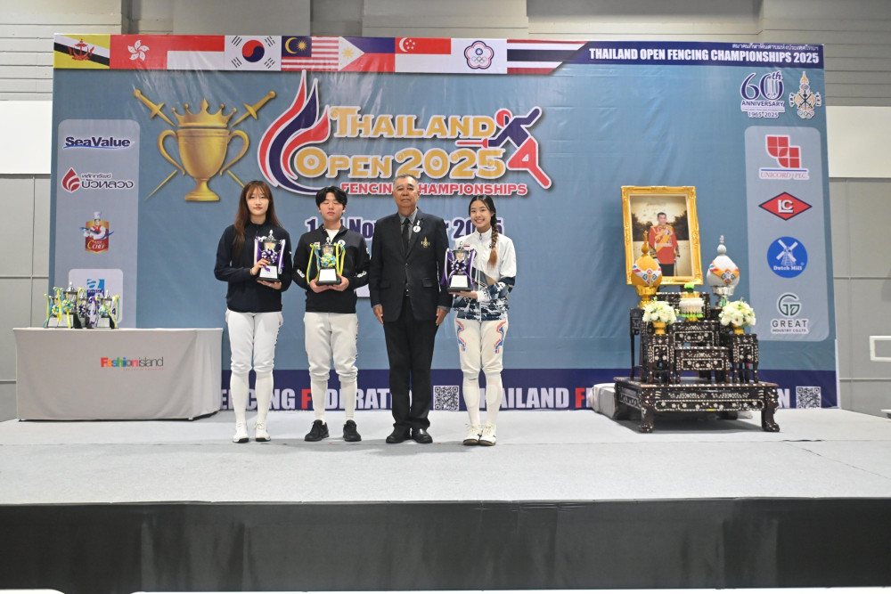 ปิดฉากอย่างยิ่งใหญ่สําหรับการแข่งขันกีฬาฟันดาบรายการ Thailand Open Fencing Championships 2025 เมื่อวันที่ 4 พฤศจิกายนที่ผ่านมา โดยปีนี้ทีมชาติไทยโชว์ฟอร์มร้อนแรงสุดขีด คว้า 2 เหรียญทองจากประเภททีมชาย พร้อมครองแชมป์คะแนนรวมสูงสุดของรายการ รับถ้วยพระราชทานจากพระบาทสมเด็จพระเจ้าอยู่หัว และสมเด็จพระราชินี