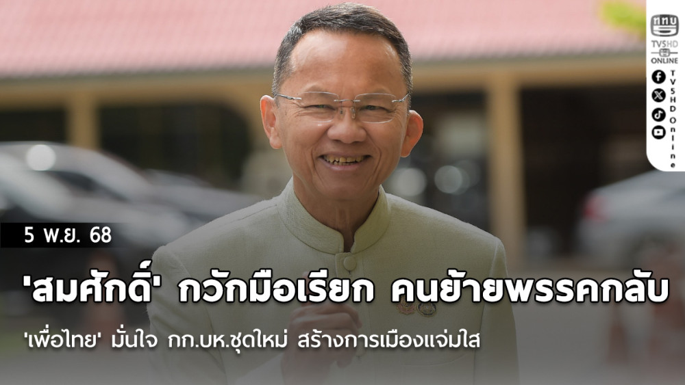 'สมศักดิ์' กวักมือเรียก คนย้ายพรรคกลับ 'เพื่อไทย' มั่นใจ กก.บห.ชุดใหม่ สร้างการเมืองแจ่มใส มีอนาคต ย้ําไม่ไปไหน “จะอยู่ตรงนี้แหละ” เชื่อมั่น “เพื่อไทย” เป็นแก่นแกนประชาธิปไตย เดินหน้าอบรมว่าที่ผู้สมัคร เตรียมความพร้อมลุยศึกเลือกตั้ง