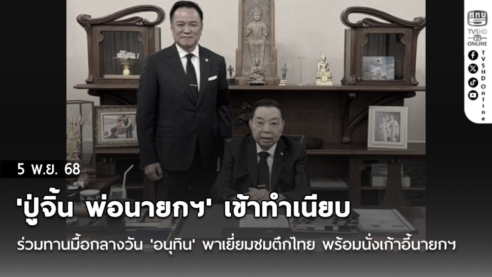 'ปู่จิ้น พ่อนายกฯ' เข้าทําเนียบ ร่วมทานมื้อกลางวัน 'อนุทิน' พาเยี่ยมชมตึกไทย พร้อมนั่งเก้าอี้นายกฯ ธรรมนัสมากราบตัก ร่วมวงกินข้าวเที่ยงด้วย
