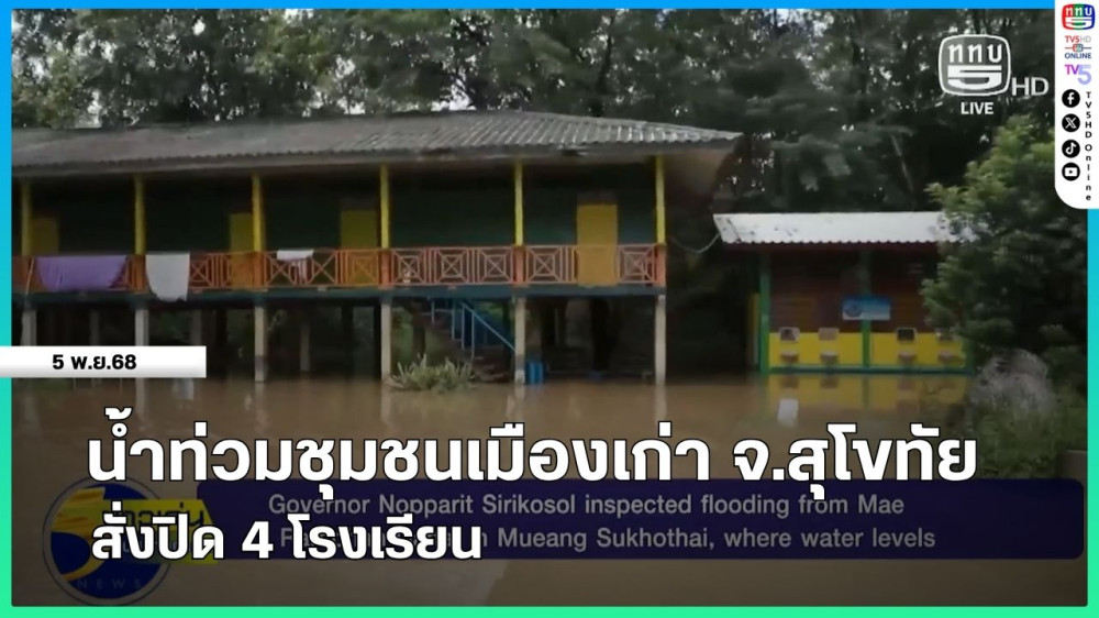 น้ําท่วมชุมชนเมืองเก่า จ.สุโขทัย สั่งปิด 4 โรงเรียน