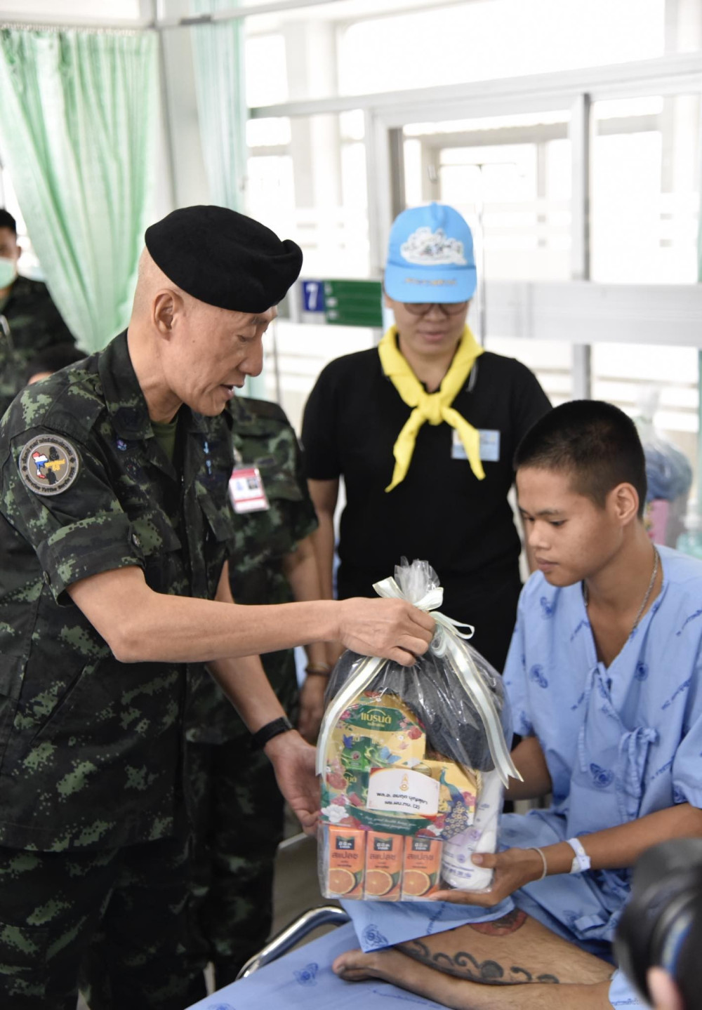 ต่อมา พล.อ.อมฤต พร้อมคณะได้เดินทางไปเยี่ยมกําลังพลที่ได้รับบาดเจ็บจากการปฏิบัติหน้าที่ ณ โรงพยาบาลค่ายสรรพสิทธิประสงค์ จังหวัดอุบลราชธานี เพื่อแสดงความห่วงใย ให้กําลังใจ และมอบของบํารุงขวัญแก่ผู้ป่วย พร้อมชื่นชมในความเสียสละและความเข้มแข็งของทหารทุกนายที่ยืนหยัดทําหน้าที่อย่างเต็มความสามารถ