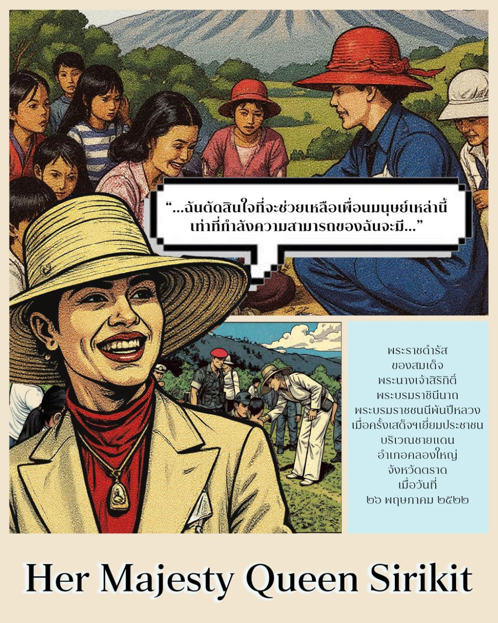 เมื่อครั้งเสด็จฯ เยี่ยมประชาชนบริเวณชายแดนอําเภอคลองใหญ่ จังหวัดตราด เมื่อวันที่ ๒๖ พฤษภาคม ๒๕๒๒