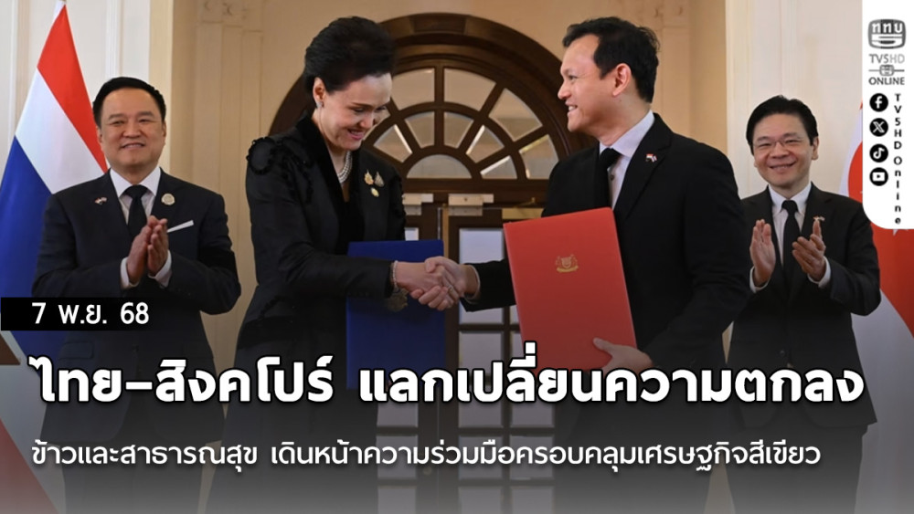 ไทย–สิงคโปร์ แลกเปลี่ยนความตกลงข้าวและสาธารณสุข เดินหน้าความร่วมมือครอบคลุมเศรษฐกิจสีเขียว ความมั่นคงทางอาหาร ความเชื่อมโยง ดิจิทัล และความร่วมมือในเวทีโลก ด้านผู้นําสองประเทศย้ําเสริมสร้าง “ความร่วมมือเชิงยุทธศาสตร์และมองไปข้างหน้า” สู่ภูมิภาคที่มั่นคง มั่งคั่ง และยั่งยืน