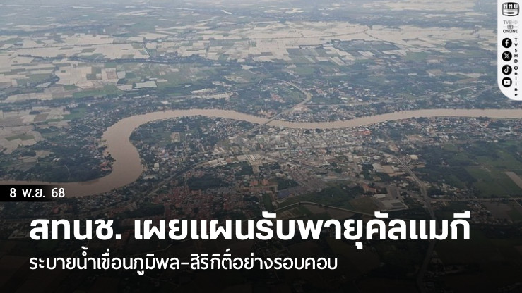 สทนช. เผยแผนบริหารจัดการน้ํารับมือพายุ “คัลแมกี” ประสานทุกหน่วยปรับการระบายน้ํา อย่างเป็นขั้นตอน ปรับเพิ่มการระบายน้ําเขื่อนภูมิพลสูงสุดไม่เกิน 60 ล้าน ลบ.ม./วัน พร้อมคงระดับระบายเขื่อนสิริกิติ์ที่ 9.91 ล้าน ลบ.ม./วัน เพื่อบรรเทาท้ายน้ํา