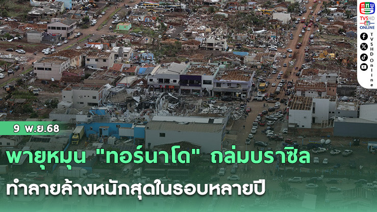วันที่ 9 พ.ย.68 - เกิดพายุทอร์นาโดลูกมหึมาพัดถล่มรัฐปารานา (Paraná) ทางตอนใต้ของประเทศเมื่อคืนวันศุกร์ที่ผ่านมา (8 พ.ย.) ส่งผลให้มีผู้เสียชีวิต 6 ราย และบาดเจ็บนับร้อยคน บ้านเรือนเสียหายหลายสิบหลัง เจ้าหน้าที่ต้องประกาศภาวะฉุกเฉินในพื้นที่ทันที