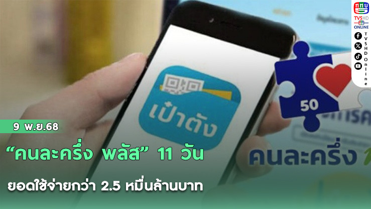 “คนละครึ่ง พลัส” 11 วัน ยอดใช้จ่ายกว่า 2.5 หมื่นล้านบาท คลังเผยร้านค้าร่วมโครงการทั่วประเทศกว่า 8.8 แสนราย ใช้สิทธิ์ได้ถึง 31 ธ.ค. ผ่านแอปฯ เป๋าตัง