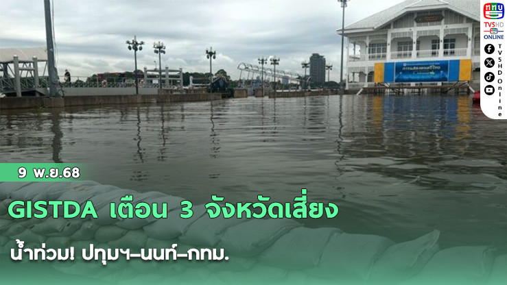 วันที่ 9 พ.ย.68 - สํานักงานพัฒนาเทคโนโลยีอวกาศและภูมิสารสนเทศ หรือ GISTDA เปิดเผยข้อมูลล่าสุดจากภาพถ่ายดาวเทียม พบว่า 3 จังหวัดปริมณฑล ได้แก่ ปทุมธานี นนทบุรี และกรุงเทพมหานคร เป็นพื้นที่ที่ต้องเฝ้าระวังน้ําท่วมอย่างใกล้ชิด หลังจากมีการเพิ่มการระบายน้ําจาก เขื่อนเจ้าพระยา ขึ้นต่อเนื่อง