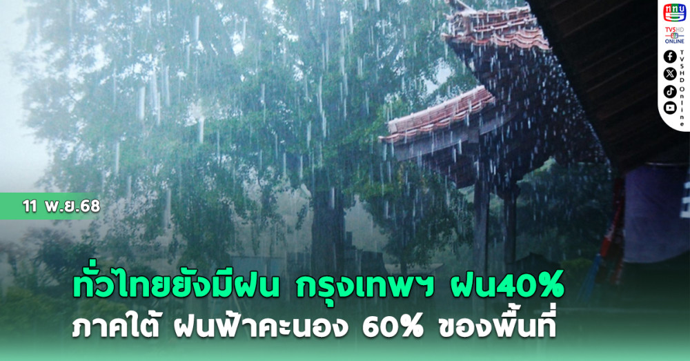 11 พฤศจิกายน 2568 กรมอุตุนิยมวิทยาพยากรณ์อากาศ 24 ชั่วโมงข้างหน้า ประเทศไทยตอนบน มีฝนฟ้าคะนองบางพื้นที่ โดยภาคเหนือและภาคตะวันออกเฉียงเหนือ ยังคงมีอากาศเย็นในตอนเช้า เนื่องจากหย่อมความกดอากาศต่ําปกคลุมประเทศเมียนมา ประกอบกับมีลมใต้และลมตะวันออกเฉียงใต้พัดปกคลุมภาคตะวันออกเฉียงเหนือตอนล่าง ภาคตะวันออกและภาคกลางตอนล่าง ในขณะที่บริเวณความกดอากาศสูงหรือหรือมวลอากาศเย็นปกคลุมภาคเหนือตอนบน และภาคตะวันออกเฉียงเหนือตอนบน